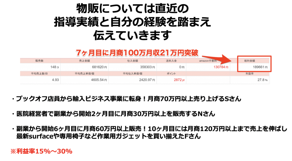 ※月商100万月収21万円はヤフオクなどその他販路を含む