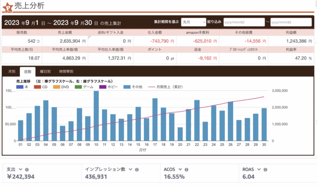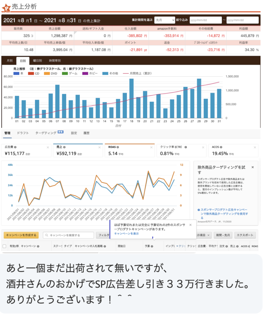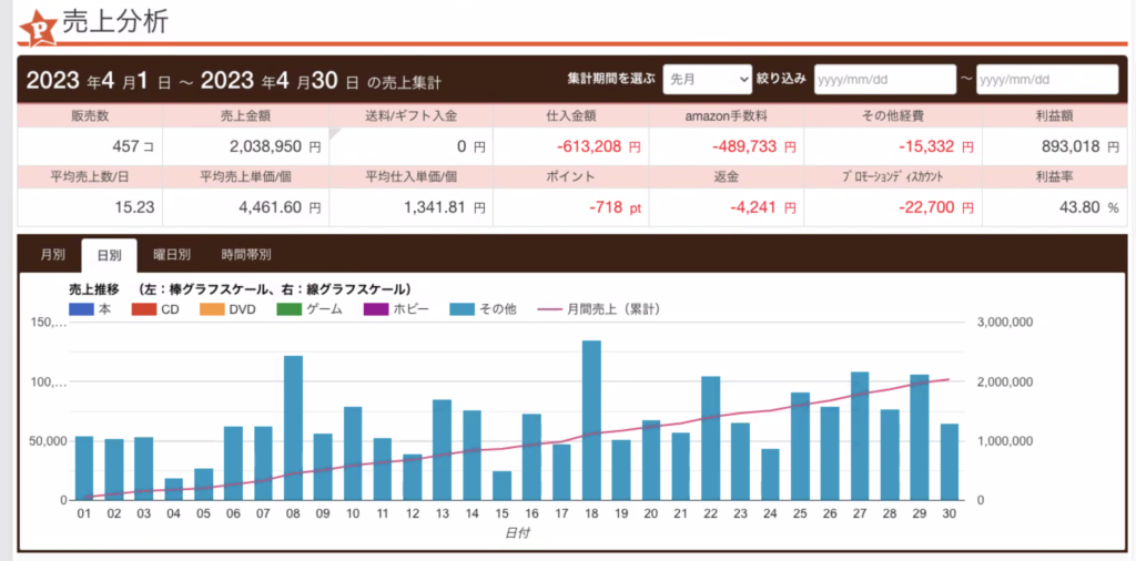 この方はサラリーマン(中間管理職)として会社に勤めながら個人で物販を行なっており、今も月商を大きく伸ばし続けています。